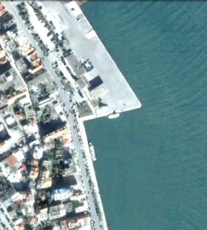 Evidentemente el golfo donde está el puerto ha cambiado: una marina abandonada en frente, un pequeño puertecito al norte, donde amarran los barcos locales, y el puerto más arreglado, con jardineras y flores. Pero la esencia es la misma, el muelle donde estuvimos está muy parecido. Lo puedo certificar, pues he vuelto varias veces más a Argostoli.